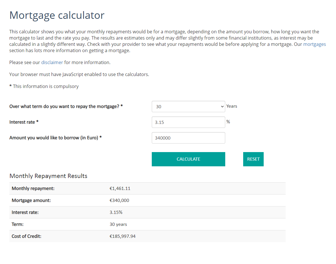 We bought a two bedroom apartment close to Grand Canal Dock area. Apartments like that would rent for something like 2000 per month (in a range 1800-2200). We paid 385000 for the apartment, which is quite a lot. But when you take a look at the mortgage - it actually can be quite cheaper than rent.